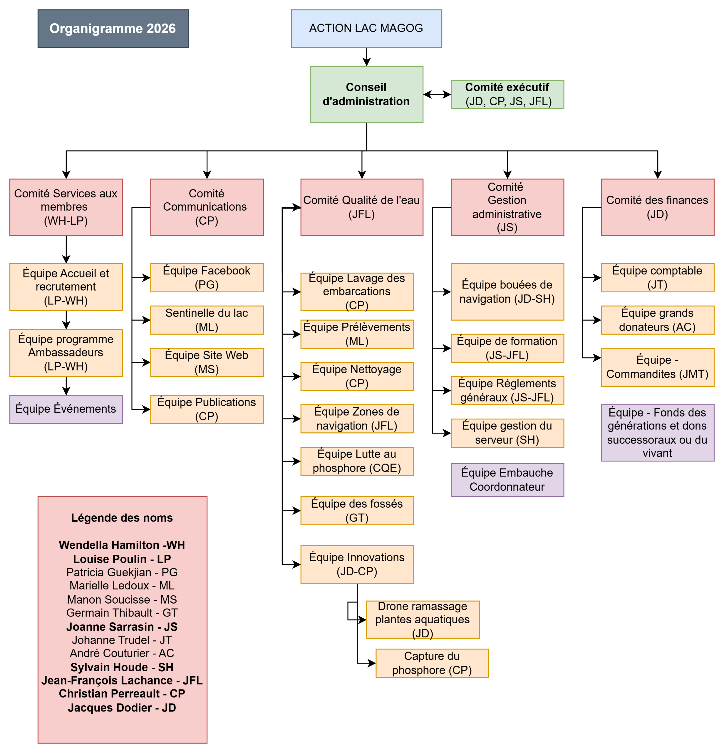 Le conseil est responsable de la saine gestion et des grandes orientations de l’organisme. Il travaille avec les membres, les partenaires et les bénévoles, afin de s’assurer que l’organisme remplit la mission qu’il s’est donnée. Le conseil soutient et supervise le travail des comités et des équipes; les relations avec les villes/MRC et les différentes instances gouvernementales; les relations avec les membres et les partenaires; et travaille principalement à l’amélioration de la qualité de l’eau, à la diffusion de l’information et à la sensibilisation des utilisatrices et des utilisateurs. Toutes les personnes actives au sein de l’association sont bénévoles.
